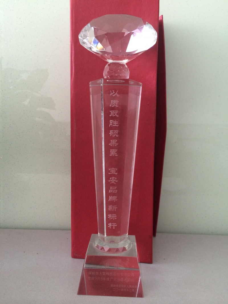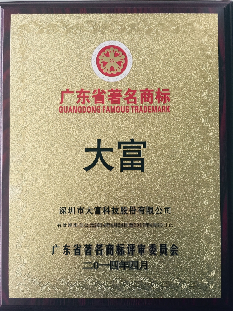 2014年04月24日,根据《广东省著名商标认定和管理规定》和《广东省著名商标评审委员会关于广东省著名商标认定和管理的实施细则》的规定,经广东省著名商标评审委员会评审通过,决定认定深圳市乐竞注册股份有限公司注册的“大富”商标为2013年度广东省著名商标。乐竞注册作为射频器件领域领先的高新技术企业获此荣誉,充分说明我司知识产权工作得到省市政府职能部门的一致认可。