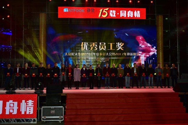2017年1月13日晚,以“15载·同舟情”为主题的大富配天集团2016年度表彰大会暨2017迎新晚会在沙井大富厂区隆重举办,来自大富配天集团各分子公司的领导、嘉宾和员工约4500人欢聚于此,济济一堂,度过了欢庆祥和的春晚之夜。